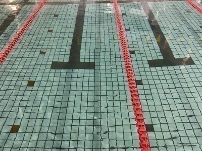 小さなお子さまに適切な距離を保っていただく為に、プールサイドにイラストをはりました。イラスト部に座ってお待ちいただけるようにお願いいたします。