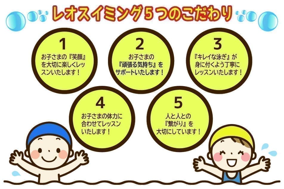 お子さまにとって大変有用性が高いスポーツであり、クロール・背泳ぎ・平泳ぎ・バタフライの4泳法を身につける事で「走る・投げる・跳ぶ」などのあらゆるスポーツの基礎となる動きが身に付くだけではなく、脳の活性化に繋がるといわれています。