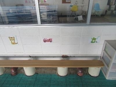 小さなお子さまにはイラストを張りましたので、間隔を開けて座っていただけるようにお願いいたします。